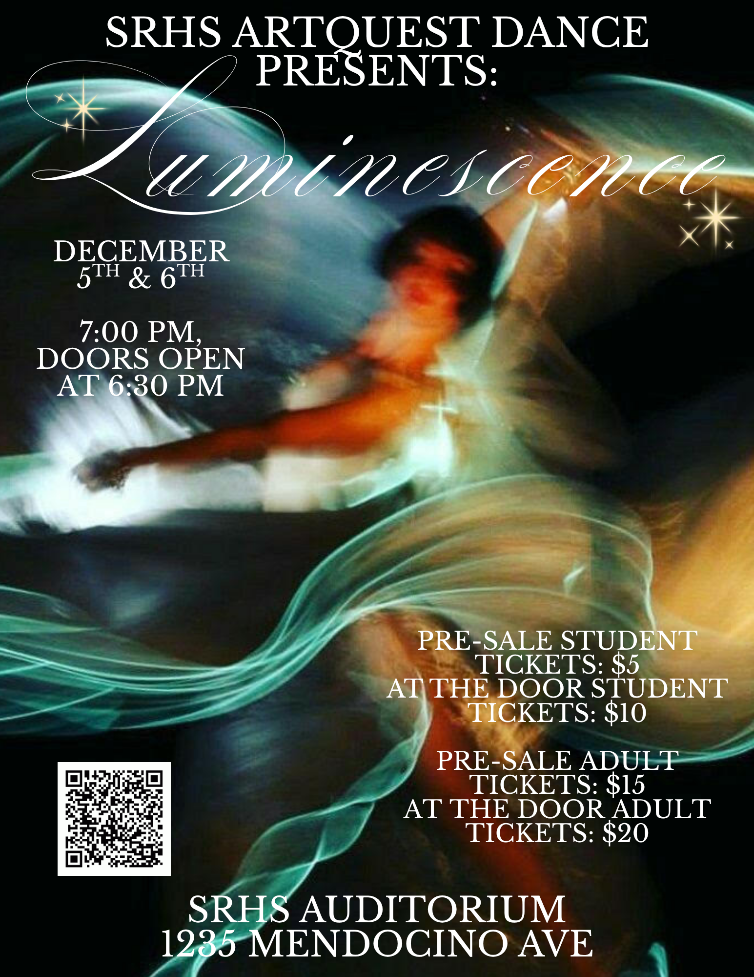 Come out to see the ArtQuest dance show, titled “Luminescence,“ with the creative artistry and physicality on display. The show is on December 5th and 6th. Both shows start at 7:00pm and the doors open at 6:30pm. Most dance pieces in Luminescence were choreographed by the ArtQuest Dance Company members, one was choreographed by guest choreographer Lyndsey Johnson, and several others were choreographed by the Director Lea Brown-Ferguson.